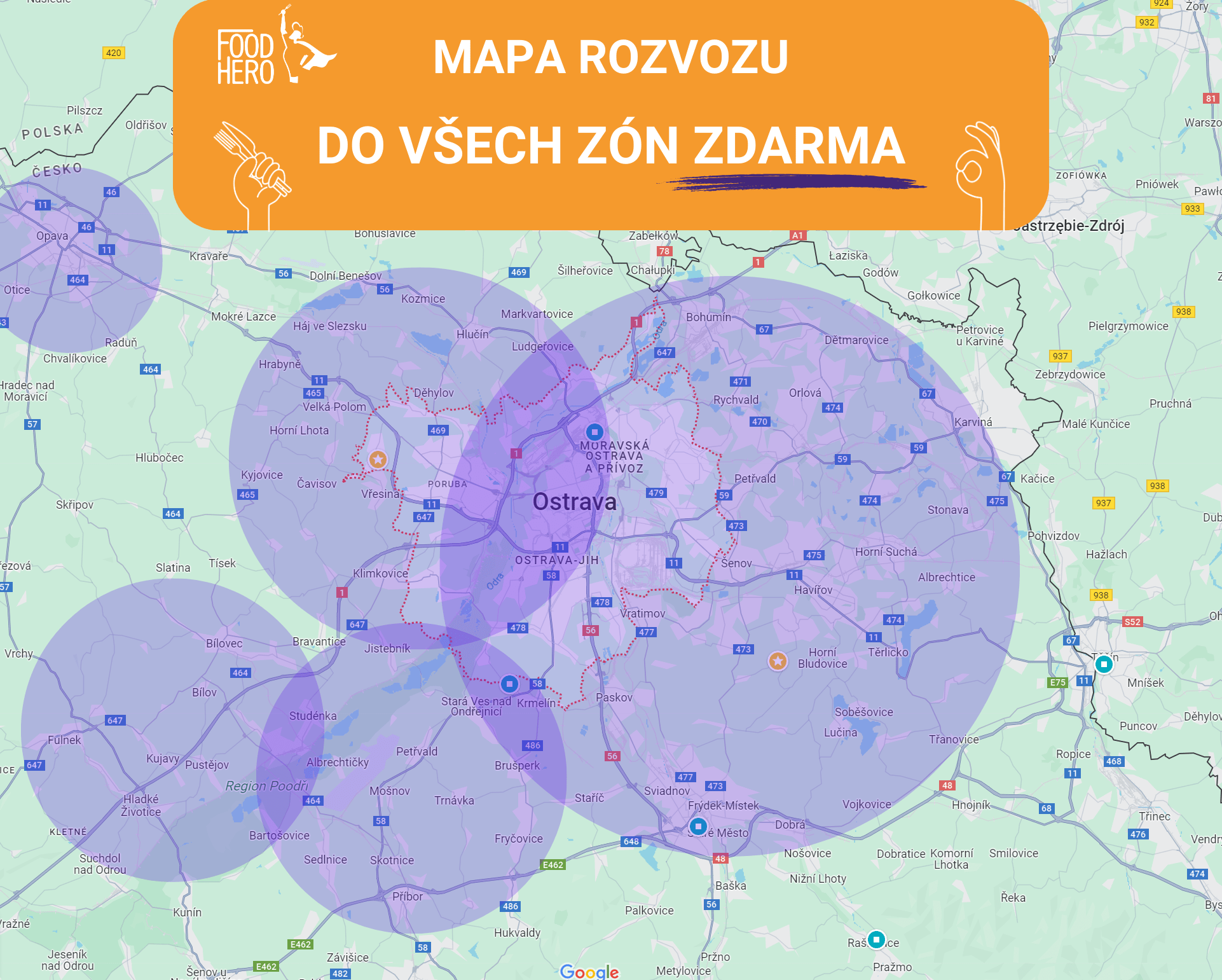 Ve Food Hero chápeme, že rychlá a přesná dodávka je klíčem k vaší spokojenosti. Aktuálně rozvážíme ZDARMA po Ostravě a jeho okolí. Pokud žijete mimo Ostravu v Moravskoslezském kraji, lze se domluvit na dovozu, který bude pro vás pohodlný. Ať už se nacházíte v srdci města nebo na samotném okraji, nemusíte se starat o dopravné či balné – je již zahrnuto v ceně objednávky.